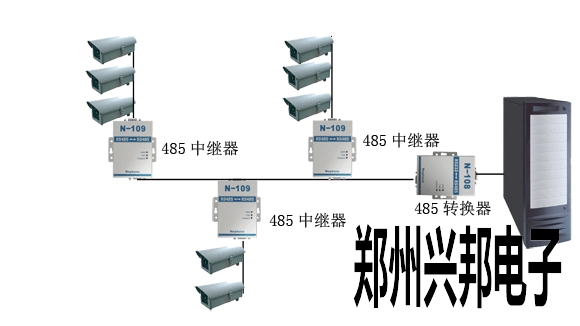 在某智能樓宇監(jiān)控項目當(dāng)中,每個樓層都有多個攝像頭對各個地點進(jìn)行監(jiān)控,利用485總線對攝像頭進(jìn)行控制,施工單位在施工過程當(dāng)中發(fā)現(xiàn),如果按照原先的485總線型的拓?fù)浣Y(jié)構(gòu)的話,485總線主干線必須要經(jīng)過每一個攝像頭,這樣將導(dǎo)致485線的距離非常的長,而且在后期的維護(hù)當(dāng)中,由于所有的攝像頭都是經(jīng)過一個485總線,如果在485總線上有一個攝像頭出現(xiàn)問題,有可能導(dǎo)致整個系統(tǒng)不能運(yùn)行。他們使用485中繼器將原先的485總線型的拓?fù)浣Y(jié)構(gòu)改造成樹型的拓?fù)浣Y(jié)構(gòu),大大簡化了施工,并且極其方便后期的維護(hù)。極大的節(jié)省了費用。