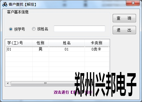 當掛失卡找到后就需要對卡片解掛,重新使用。在卡管理中右鍵點擊解掛,輸入需要解掛的學號或者姓名點擊查詢,出現卡信息,將卡片放于讀卡器上,雙擊信息,卡片信息與卡片必須一致,否則會出現提醒卡片與信息不符,不是掛失卡不能進行解掛操作。雙擊解掛成功后,此卡片狀態為正常卡。在操作過程中完成后再將卡片拿走,否則容易導致卡片異常。