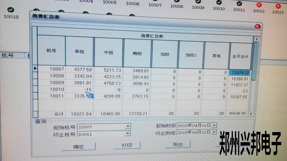上面這個圖10號機早班午班都是負數,首先查一下這個時間段的消費明細表里的記錄。