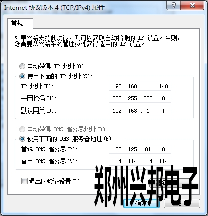 3、子網(wǎng)掩碼采用默認設置,網(wǎng)關(guān)填寫要與網(wǎng)段一致,192.168. 所才網(wǎng)關(guān) .1。