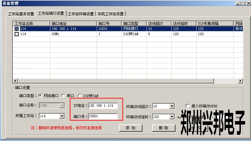 工作站端口設置完成后,在工作站終端設置中添加對應的終端即可,如下圖所示: