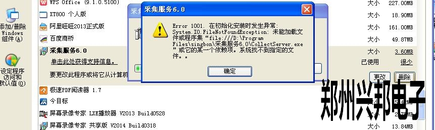 在卸載采集服務的時候,出現了Error:1001.在初始化安裝時發生異常,未能加載文件或程序集