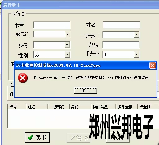 局聯(lián)網(wǎng)一卡通軟件發(fā)行新卡的時(shí)候出現(xiàn)語法錯誤