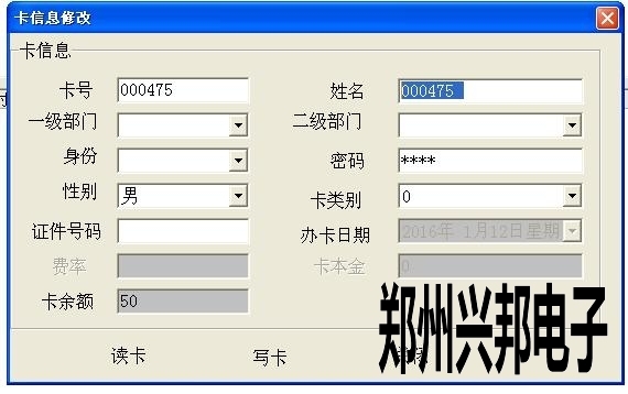 2、先把卡放IC卡讀卡器上,讀卡,出現(xiàn)卡信息后,直接修改卡信息。(注:卡號是不能修改的。卡號只有在發(fā)行的時候來修改,一但發(fā)行就不能修改了。)