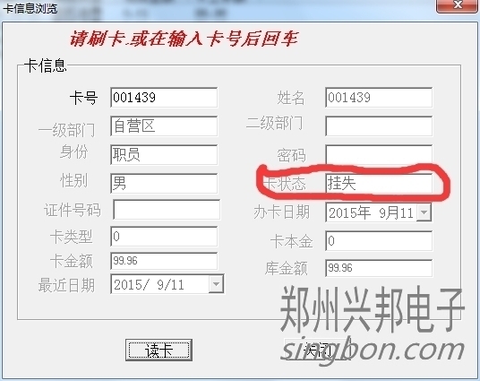 卡片就上面三種狀態(tài),另外一些操作,會(huì)造成卡狀態(tài)改變,比如:掛失的卡解掛,就變成消費(fèi)卡;掛失的卡補(bǔ)辦新卡,掛失卡就會(huì)變成新卡;消費(fèi)卡被收繳舊卡就變成新卡。新卡在消費(fèi)機(jī)上刷卡會(huì)顯示1-Err,消費(fèi)卡會(huì)顯示金額,掛失卡會(huì)顯示4-Err。