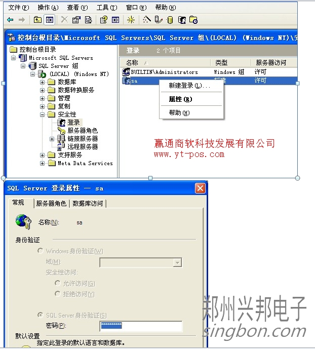 1. SQL2000開始目錄→企業管理器→SQL Server組→安全性→登陸